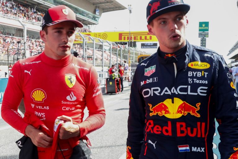 Max Verstappen and Charles Leclerc, who are competing for the…