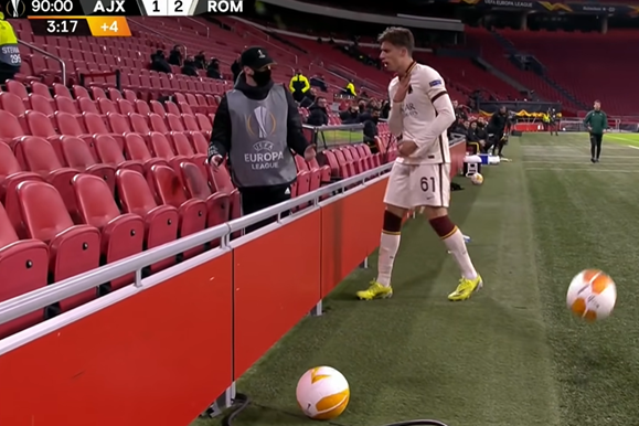 An Ajax ballboy launched a ball at Roma’s Riccardo Calafiori in Thursday’s…
